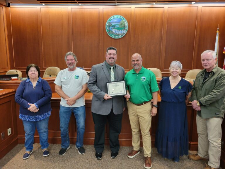 As a part of the FCCMA Professional Management Matters initiative, the City of Green Cove Springs Mayor, Council Members, and Interim City Manager were recognized for 80 years of the Council-Manager form of government by Senior Advisor Jim Hanson. Pictured left to right: Council Member Glee Glisson, Council Member Darren Stutts, Interim City Manager Mike…