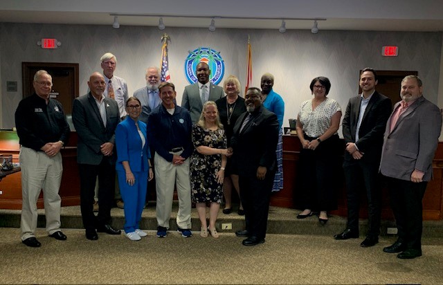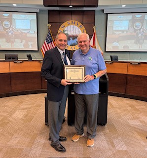 As part of the FCCMA Professional Management Matters initiative, the City of New Smyrna Beach Mayor, Current Commissioners, and City Manager were recognized by FCCMA’s Senior Advisor Ken Parker, for 105 years of the Commission-Manager form of government. Left to Right: City Manager Kevin Cowper and FCCMA Senior Advisor Ken Parker.